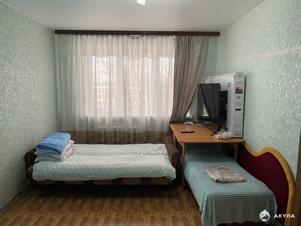 Общая площадь 32, 2 кв. м. Комната 19 кв. м., кухня 6 кв.м. Большой коридор. Санузел совмещен. Окна и трубы пластиковые, в том числе стояк. Установлены счётчики на воду.