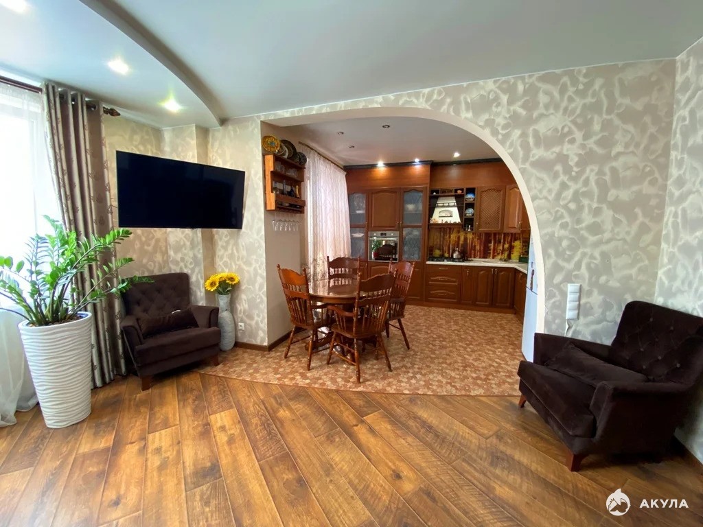 Теплые полы во всей квартире! Напольное покрытие – плитка и качественный ламинат. Окна ПВХ. Шпонированное покрытие межкомнатных дверей. Потрясающая кухня из массива осины.
