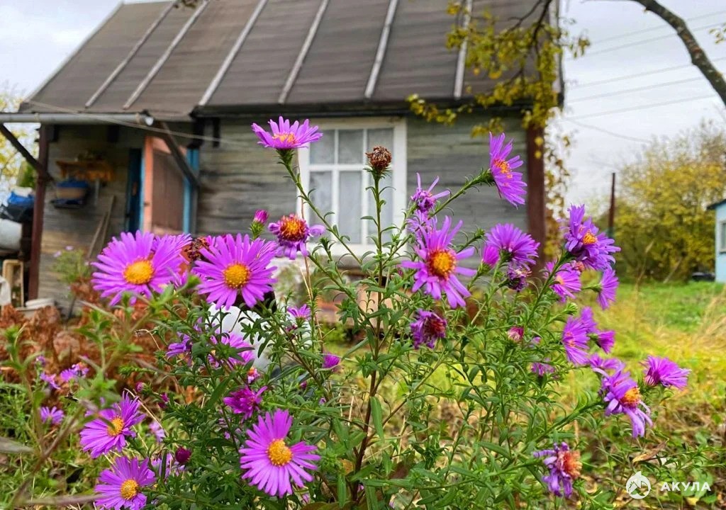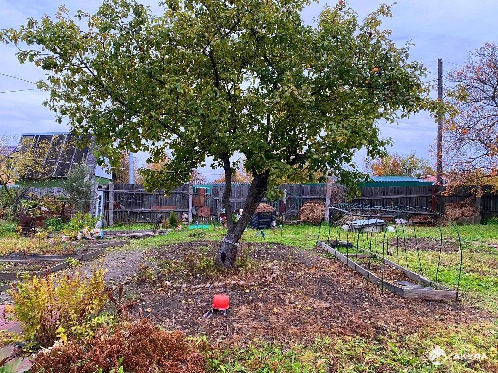 На участке колодец, маленький садовый домик с новой кровлей, туалет, плодовые деревья, грядки, цветы.